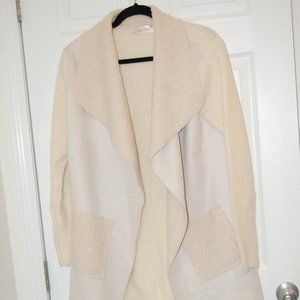 Simply Couture XL Ivory Suede& Sherpa Like Open Jacket W/ Knit Sleeves & Back