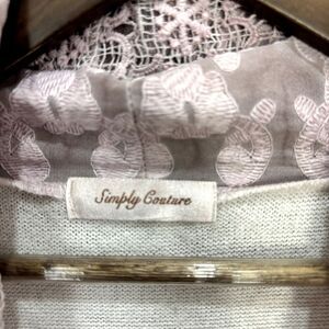 Simply Couture open front cardigan sweater 1X lace embroidered hanky hem fairy boho chic coquette