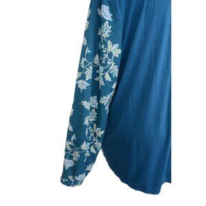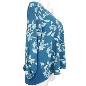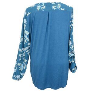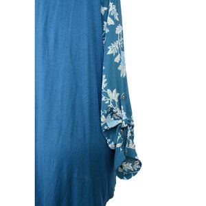 Simply Emma PLUS Size 3X Blue Floral Roll Tab Sleeves Zipper Front Flowy Stretch