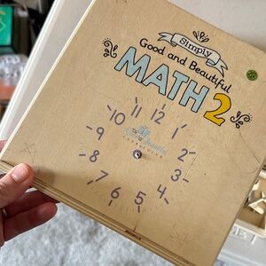 Simply Good and Beautiful Math 2 clock with a charming design. Features a cream background with colorful accents.