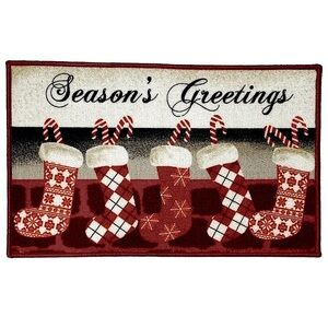 Simply Holiday Christmas Seasons Greetings Scatter Rug Accent Non Skid Mat 17.5 X 28 inches