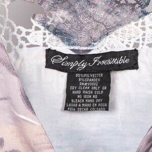 Simply Irresistible Blouse L Womens Top Lace Detail Back Gray Floral Flutter