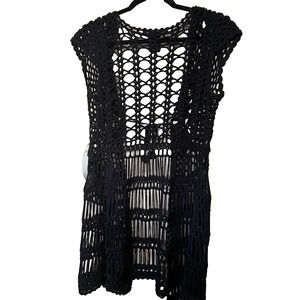 #23993 Simply Irresistible Womens Cover Up Cardigan Sleeveless Black Open Crochet Boho Edgy Beachy