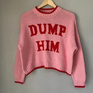 Simply Jules DUMP HIM Pink Crewneck Long Sleeve Sweater, Small
