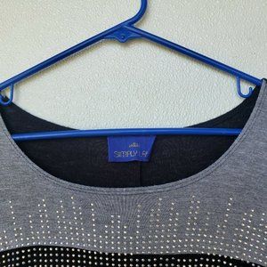 Simply Lara Top Blouse Long Sleeve Color Block Grey and Black Women Size M