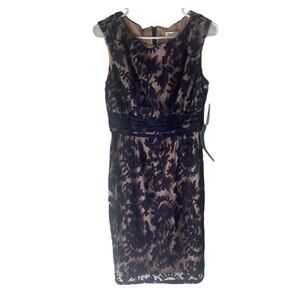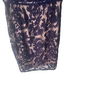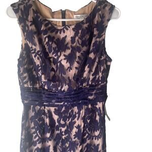 Beautiful lace sheath cocktail dress in Night (dark bluish purple) with light tan lining.