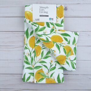 Simply Lux Living Kitchen Towels Lemons Set of 2 Cotton Bamboo