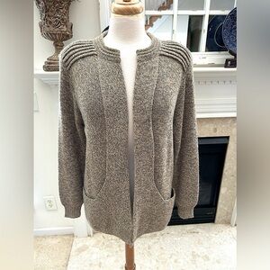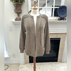Beautifully feminine style sweater cape cardigan by Simply Natural. 70% Alpaca. Perfect go to sweater. Unique pocket style front. Removable shoulder pads. Size medium. Like new Condition