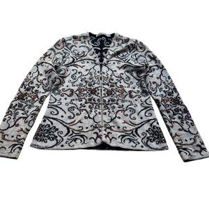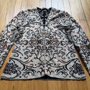 Simply Natural Size S Beige & Black Alpacal Peru Embroidered Cardigan