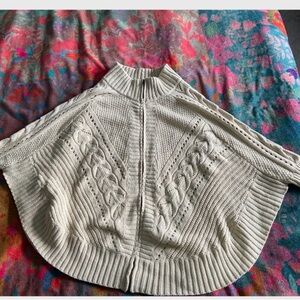 Simply Noelle Cream Colored Cream Cable Knit Poncho Sz L Zipper Accent Boho