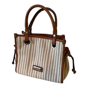 Simply Noelle Handbag leather & teak, brown, cream, black, & tan EUC!