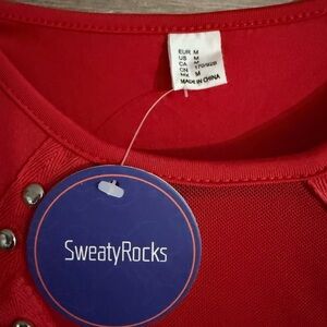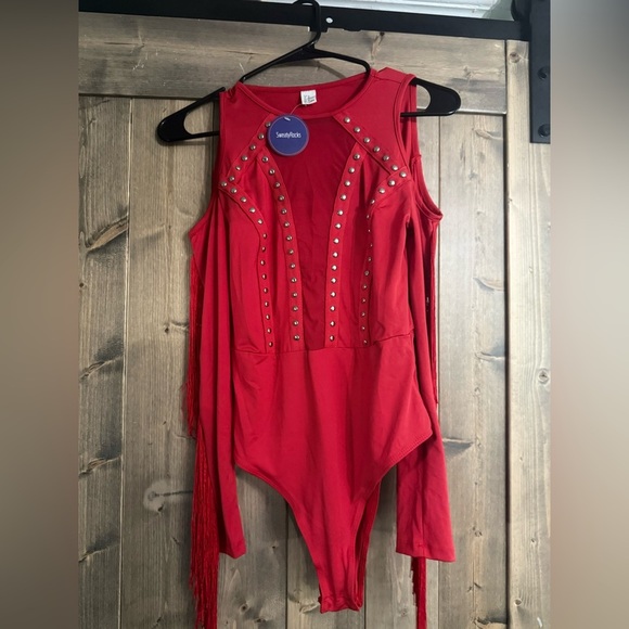Elevate your style with the Simply Noelle scarlet bodysuit, featuring chic studded details. Perfect for making a bold statement.