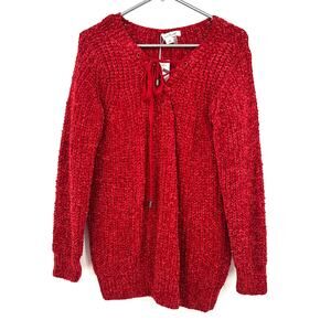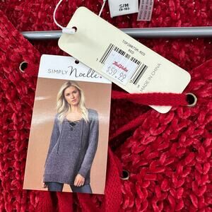 Simply Noelle Size S/M 8-10 Sweater Red Chunky Knit Lace Up Neck NWT Fall Autumn