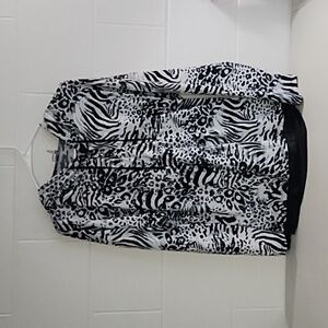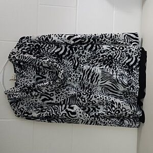 Simply Noelle Tee Shirt Knit Animal Print Hoodie Sheer Detail Trim 12/14 Lg/XL