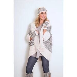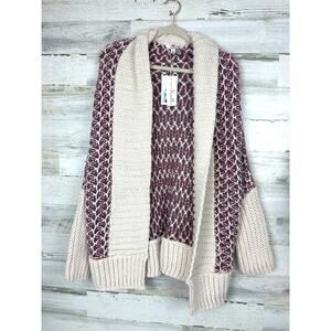 Simply Noelle Women’s One Size Cream Rose Knit 3/4 Sleeve Cardigan Sweater NWT
