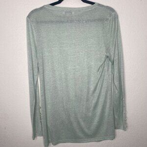 Simply Noelle Womens S/M Light Green Knotted Long Sleeve Top W/Pearl Buttons