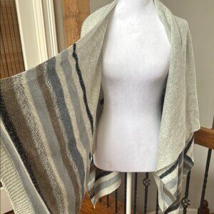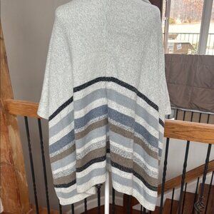 Simply Noelle open front cardigan wrap poncho gray stripe cream blue olive