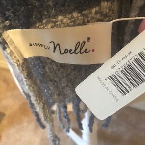 Simply Noelle scarf with fringe. 100% acryclic, shades of gray. Very soft. 20” x 70”, could also be worn as a shawl . NWT