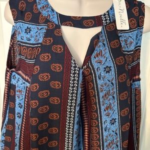 Blue navy and brown shift dress, pockets on hip