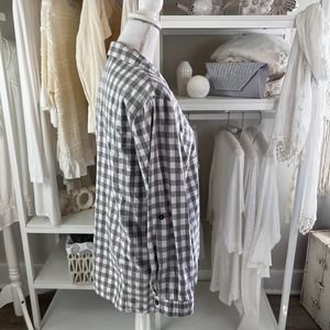 Simply Noelle sz. L, XL white & gray checkered button up casual, office #1634