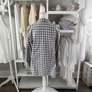 Simply Noelle women's white & gray checkered button up casual, office #1634