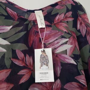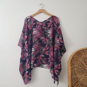 Simply Noelle Floral Chiffon Poncho NWT Black Green Pink