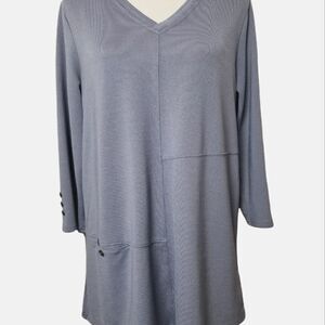 Simply Noelle Grey V-neck 3/4 Sleeve Tunic Top Size S/M