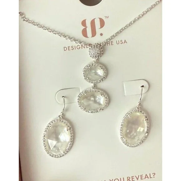 Genuine mother of pearl on silver, necklace and earring set by Bomb Party.