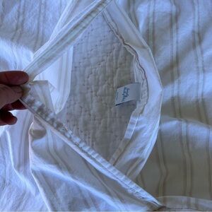 Simply Shabby Chic Quilted Cherry Blossom Pillow Sham. Retired print!! White with Pink hand quilting and a Cherry Blossom border complete with Pink satin ribbon accent. Pink & Green stripes on the back. Envelope closure at back. So feminine and pretty! Perfect Cottagecore Love Shack Fancy style vibes! Great preowned condition with no staining or flaws.