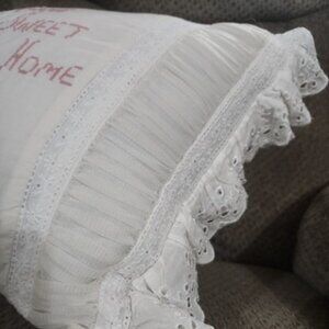 Simply Shabby Chic Home Sweet Home Pillow VTG 10x15 Embroidered ruffle cottage