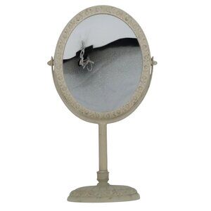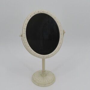 Simply Shabby Chic Ivory Floral Flower Trim Tabletop Vanity Mirror Double Sided