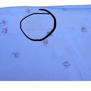 Simply Shabby Chic Mon Ami Pink Rose Queen Size Flat Top Sheet. White with petite pink rose print. Good preowned condition with no holes or tears. It has some yellow spots on it. Most are very faint, but some a bit darker.