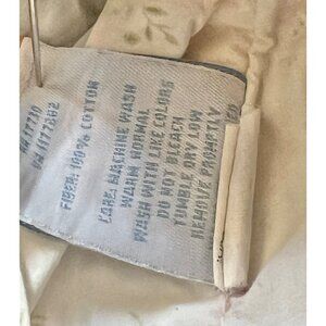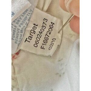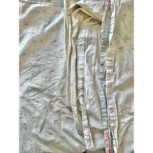 Wrinkling visible; no holes or tears. Slight yellowing on upper area of reverse fabric of small roses on white background. A laundry session with an enzyme soap like Tide may remove it. See photos