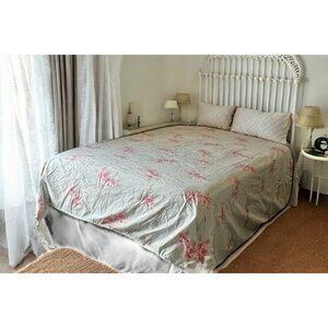 Simply Shabby Chic Queen Floral Cotton Duvet Cover Pink & Green On Light Blue