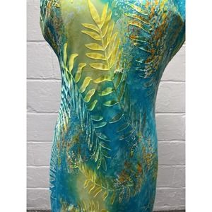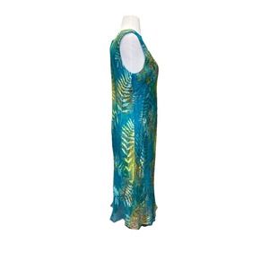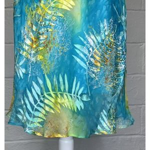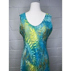 Simply Silk Large Slip Dress Velvet Burnout Green Blue Fern Floral Fairycore