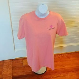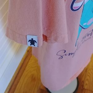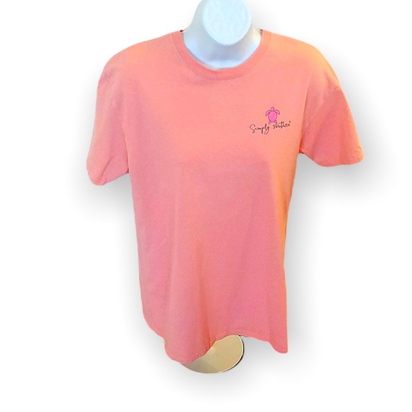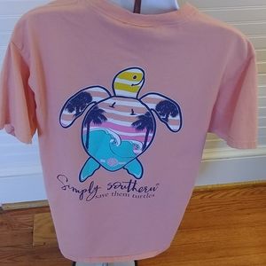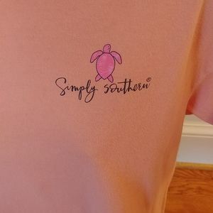 Salmon colored Simply Southern tee shirt. Preowned but in good condition. Pet free home and no stains, holes or rips noted.