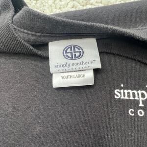 Simply Southern Believe In The Magic Of Christmas Black Long Sleeve Tee YL. Preowned and in good condition. Long sleeve black tee, simply southern printed on sleeve and branding on front. Big print on back. This is a youth large. Please see all photos. Approx measurements in pictures.