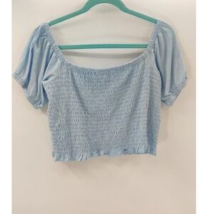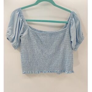 Simply Southern Collection Blouse Womens Size XXL Light Blue Crop Top Smocked Off Shoulder Cottagecore Puff Sleeve