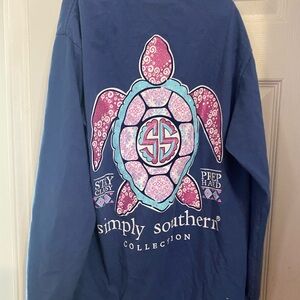 Simply Southern Blue Long Sleeve Tee Shirt -Turtle Classy Preppy Crew