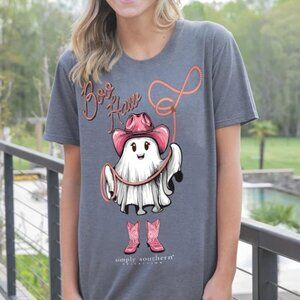 Simply Southern Boo Haw Cowgirl Ghost T-Shirt Dark Heather Gray Soft Size Medium
