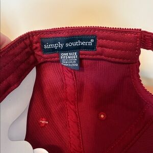 Burgundy corduroy hat with 'Yee Haw' in white and gold. Simply Southern logo on the side.