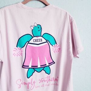Simply Southern Cheerleading Turtle Pink Short Sleeve Tee