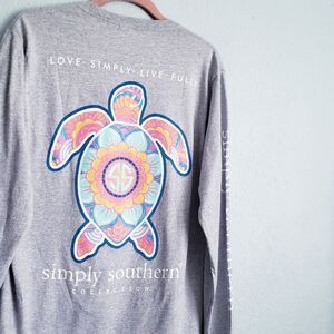 Simply Southern Colorful Turtle Gray Long Sleeve Tee