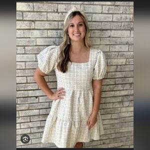 Simply Southern Cream/Gold Tweed Puff Sleeve Mini Dress NWT Size S