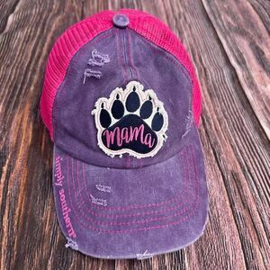 Simply Southern Distressed Mama Bear Womens Cap Pink & Purple Ponytail Back