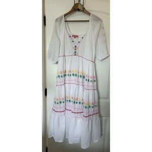 Simply Southern Dress Medium Embroidered Maxi Turtle Flowers Beachy Resort Lilly Gauze