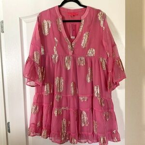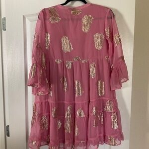 Simply Southern Dress/Cover Up, NWT, Sheer Pink with Gold Pineapples,