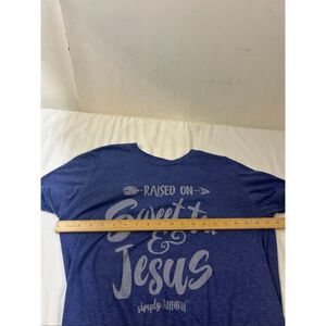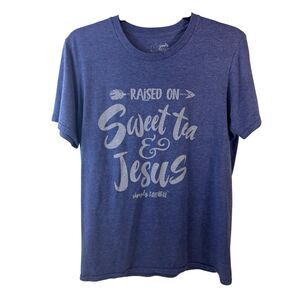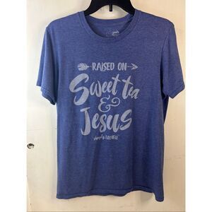 Simply Southern Faithful Sweet tea and Jesus t-shirt Medium Blue. measures 20" chest, 25" long. good used condition.