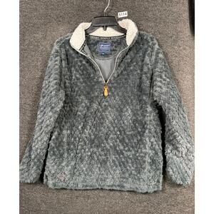 Simply Southern Faux Fur Sherpa Quarter Zip Sweatshirt Womens Sz M Gray Pullover