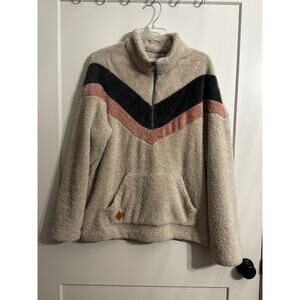 Simply Southern Faux Fur Sherpa tan 1/4 Zip Pullover Jacket hand pocket Sz XXL